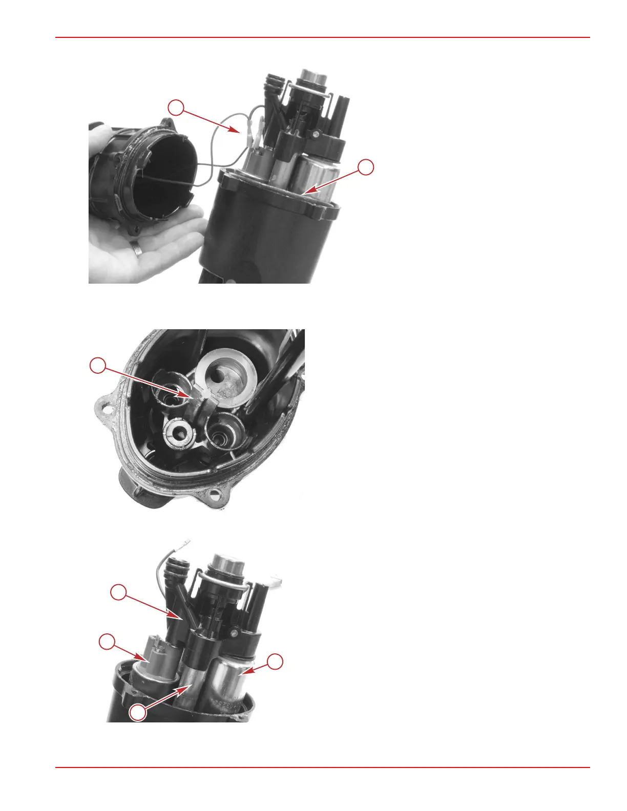 7. Disconnect the upper housing power wires from the fuel pump connectors and remove the O‑ring.