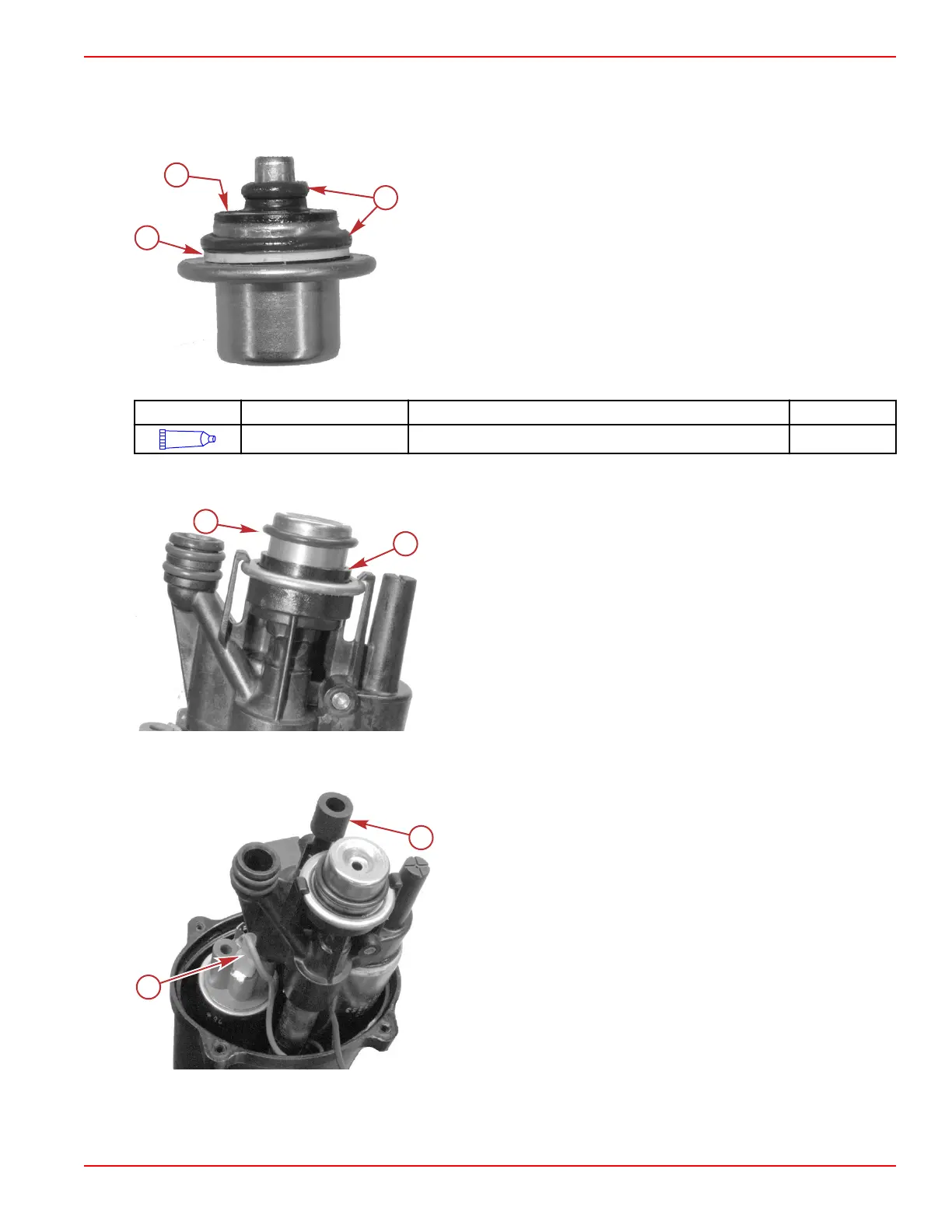 17. Install the O‑rings onto the fuel pressure regulator and lubricate them with 2‑4‑C with PTFE.
