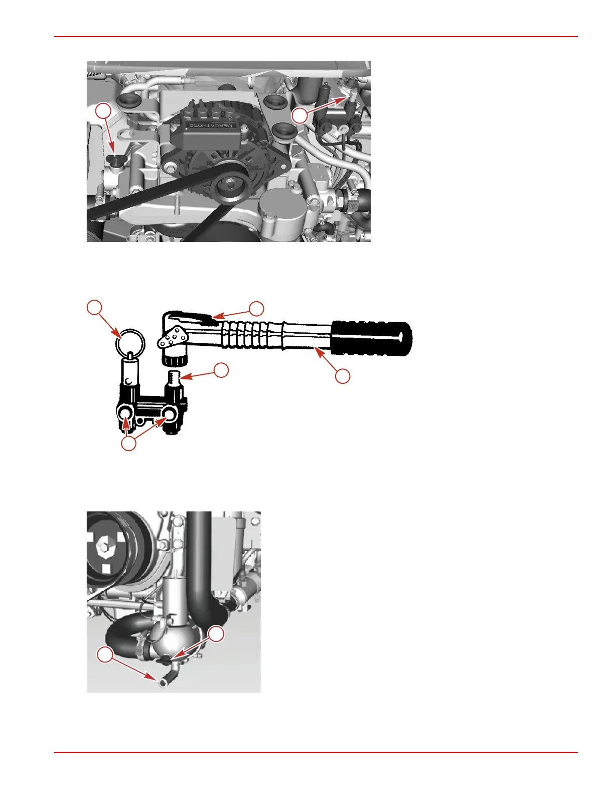 blue plug on the distribution housing and the seawater pump housing.