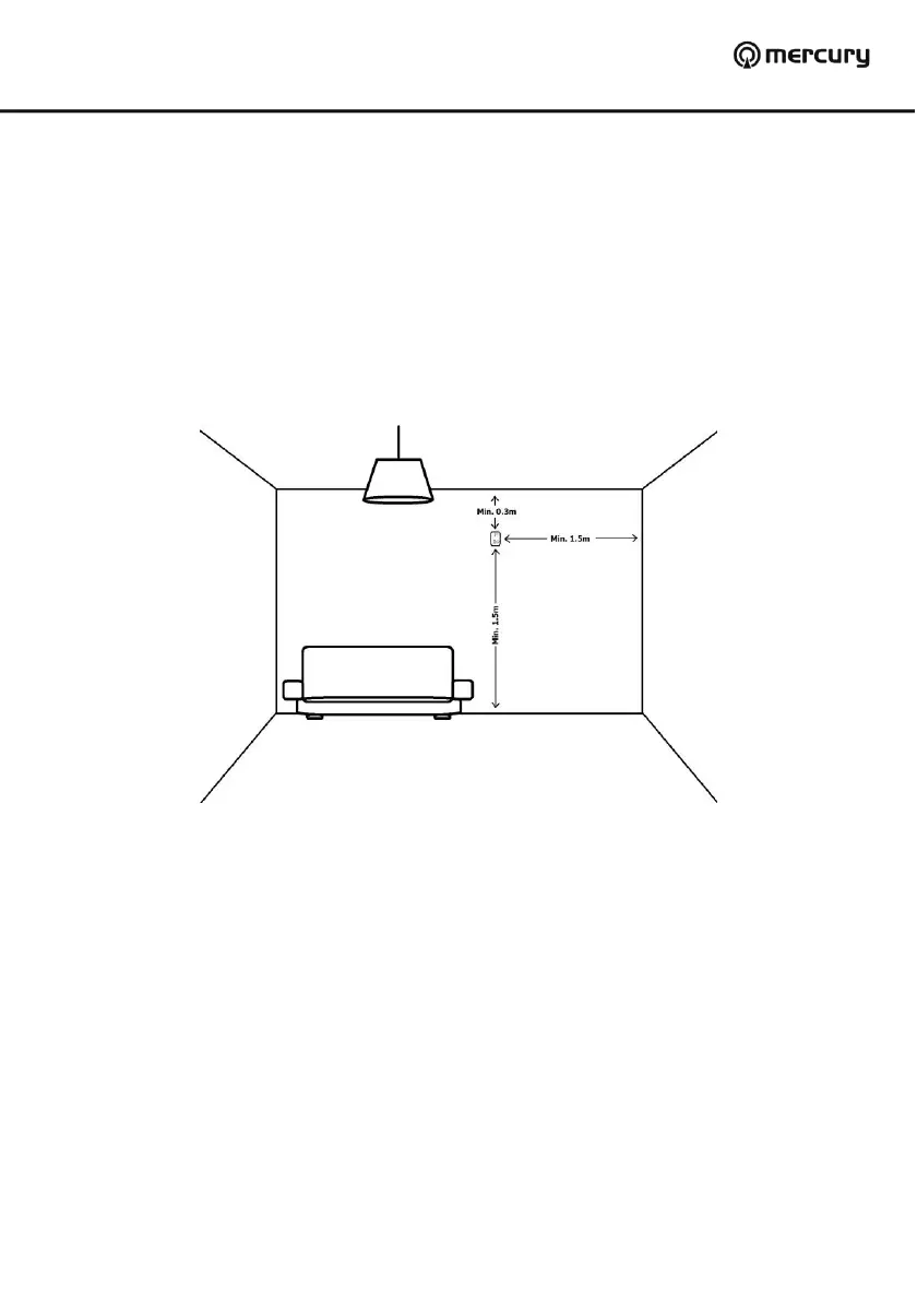 installed at least 1.5m above the ground, 0.3m below the ceiling and 1.5m from the corner of the room.