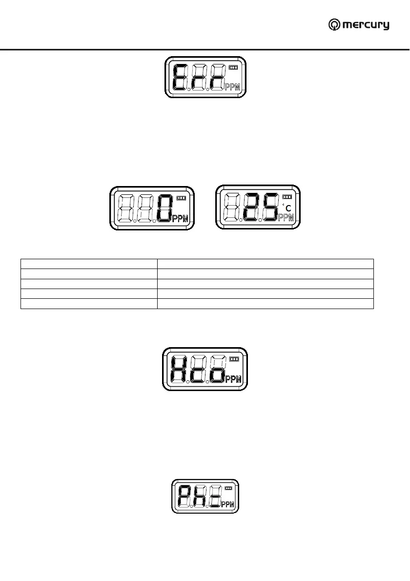 room. To bring up the reading, simply press and hold TEST button until “Ph=” is displayed on the front