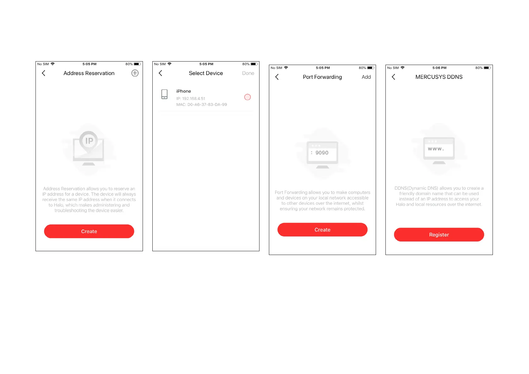 Mercusys Halo H80X - Reserve IP Addresses; Address Reservation Function; Port Forwarding Rules; Enable External Access to Devices