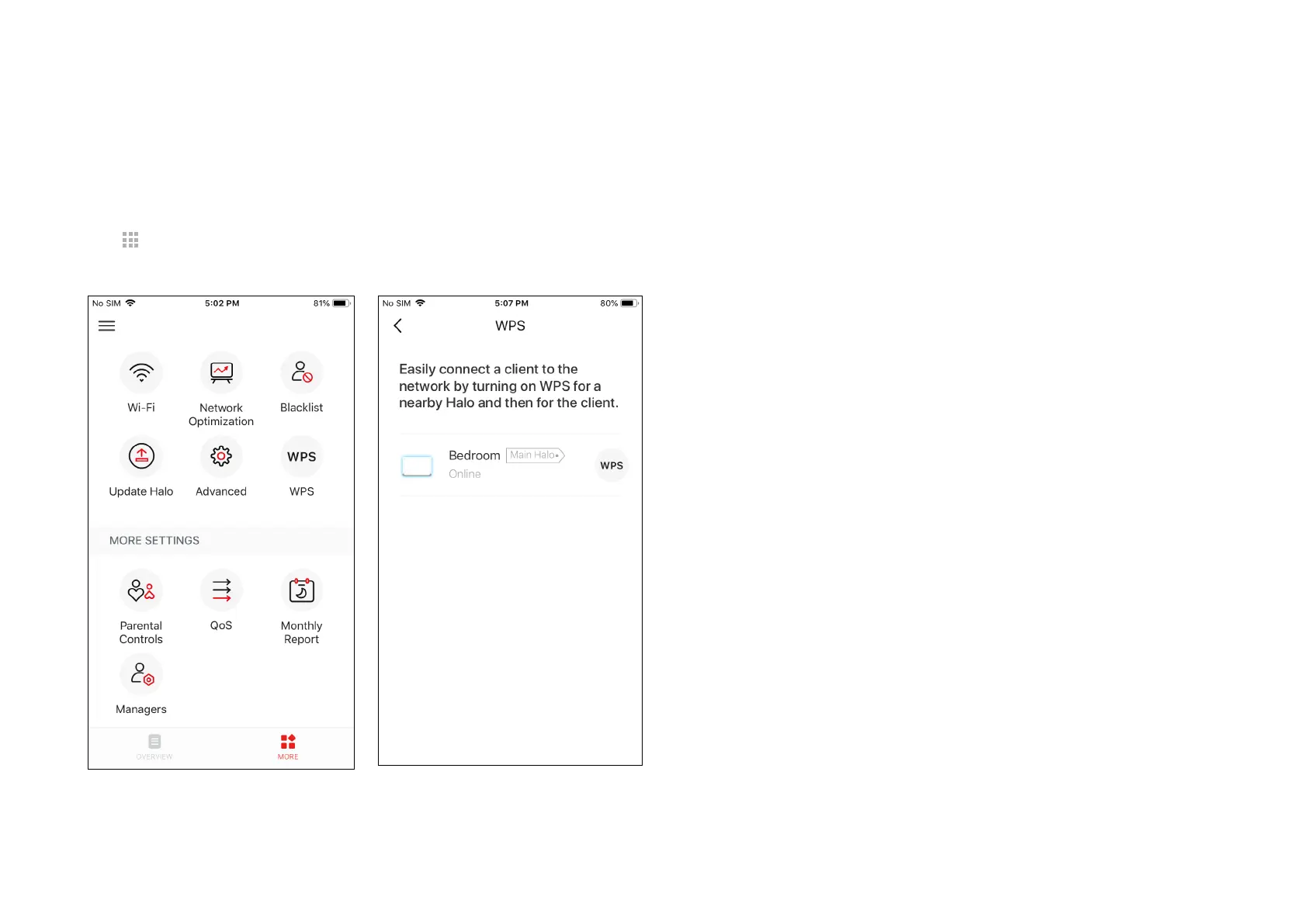 Tap the WPS icon on Halo app and