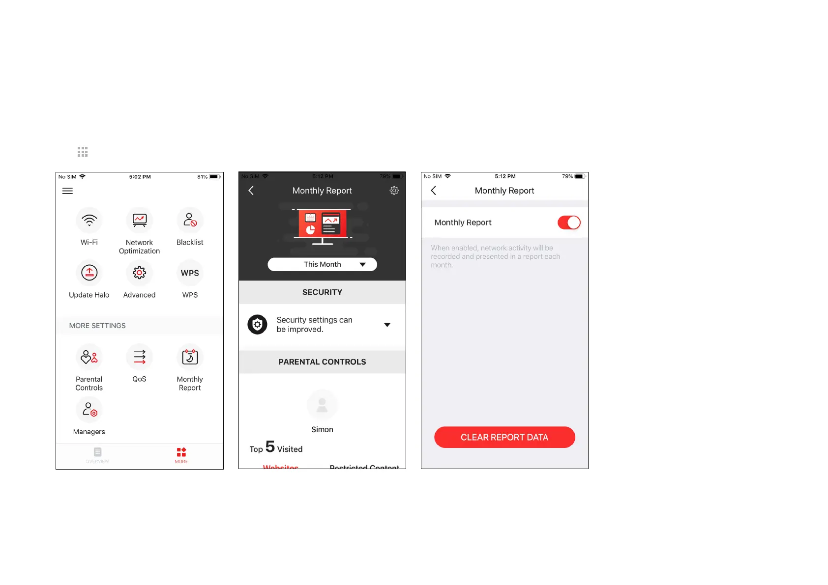 Review the monthly usage statistics, such as security threats and total connected network devices each day.