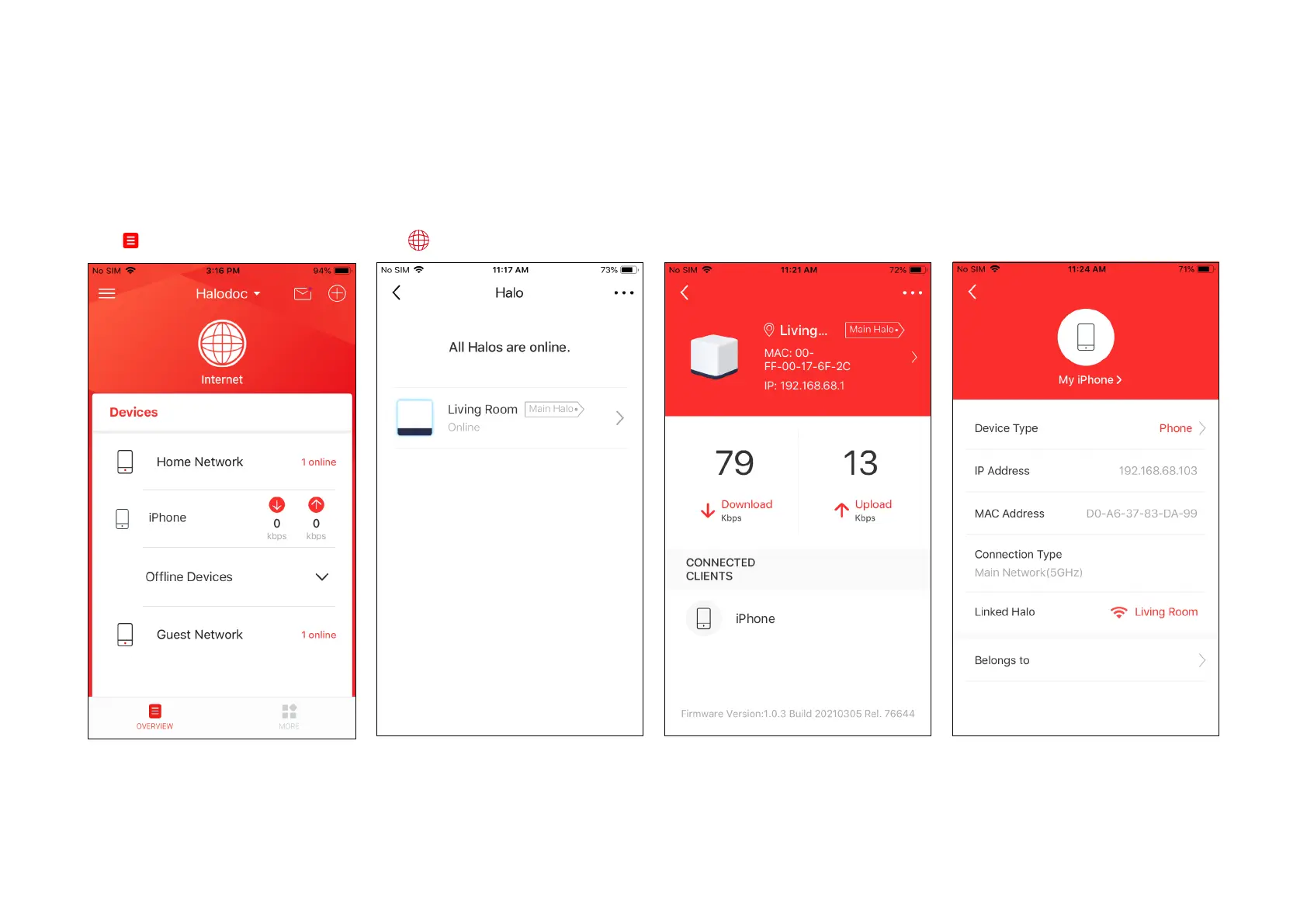 After you successfully set up your Halo network, you will see the dashboard of the app. Here you can check the working status of all the Halos, manage