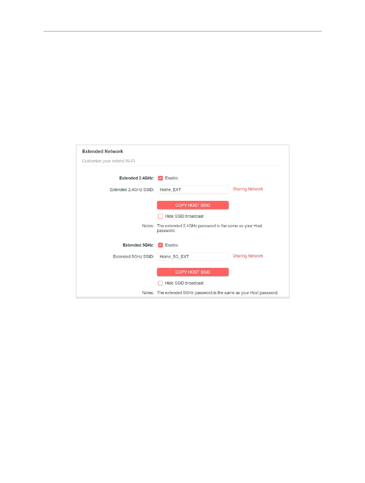 2. Create a new SSID in Extended 2.4GHz SSID or click COPY HOST SSID. The value
