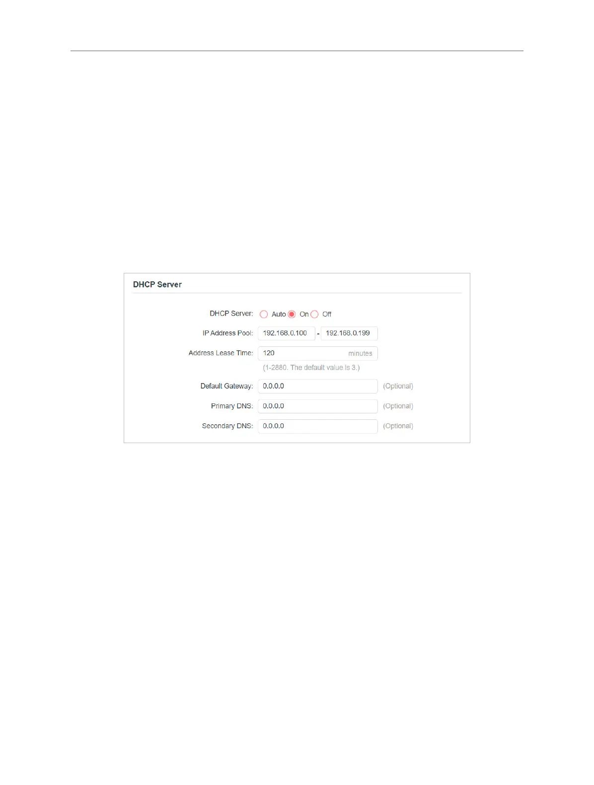 By default, the DHCP (Dynamic Host Conguration Protocol) Server is auto and the
