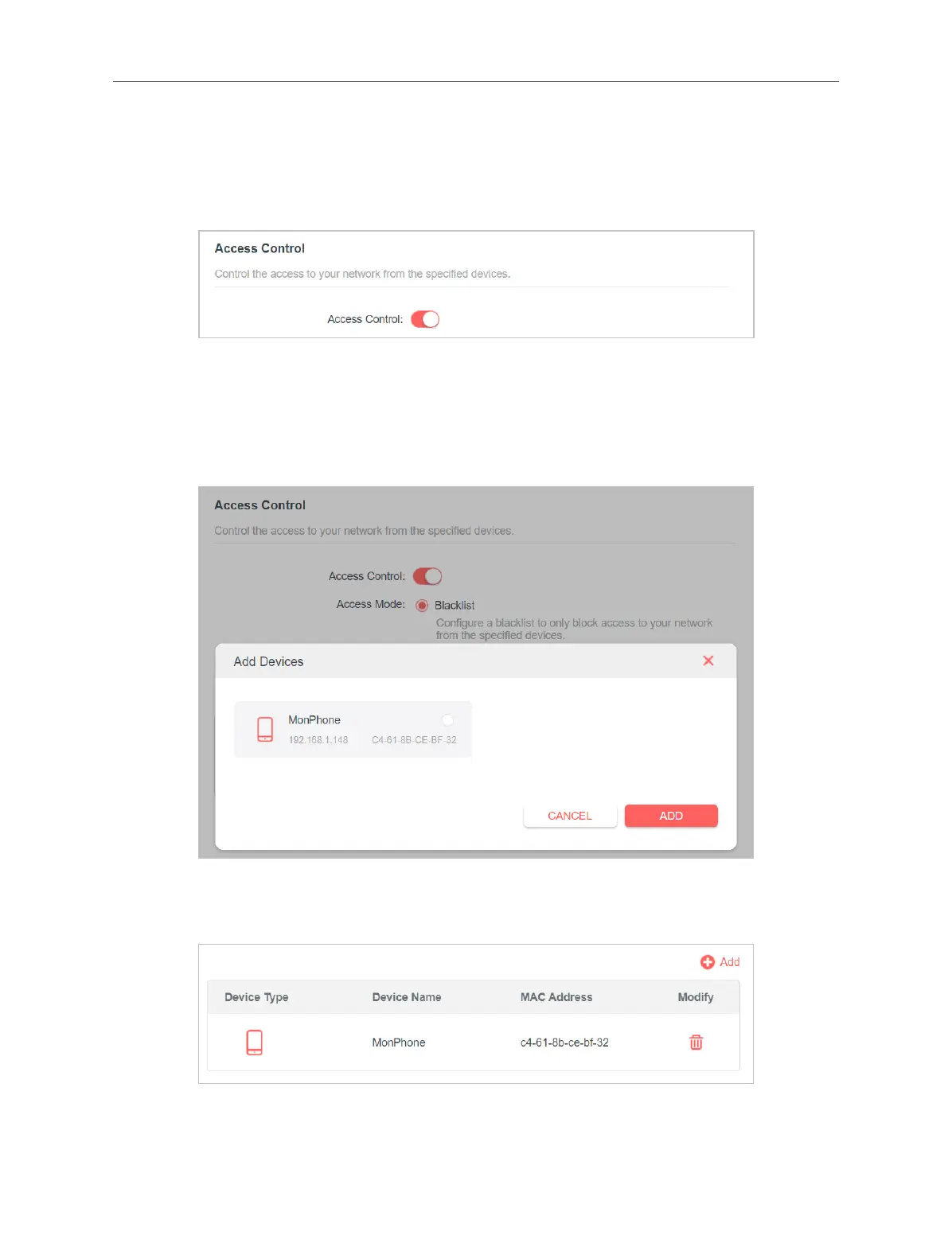 3. Click ADD and the selected device(s) will be added to the blacklist.
