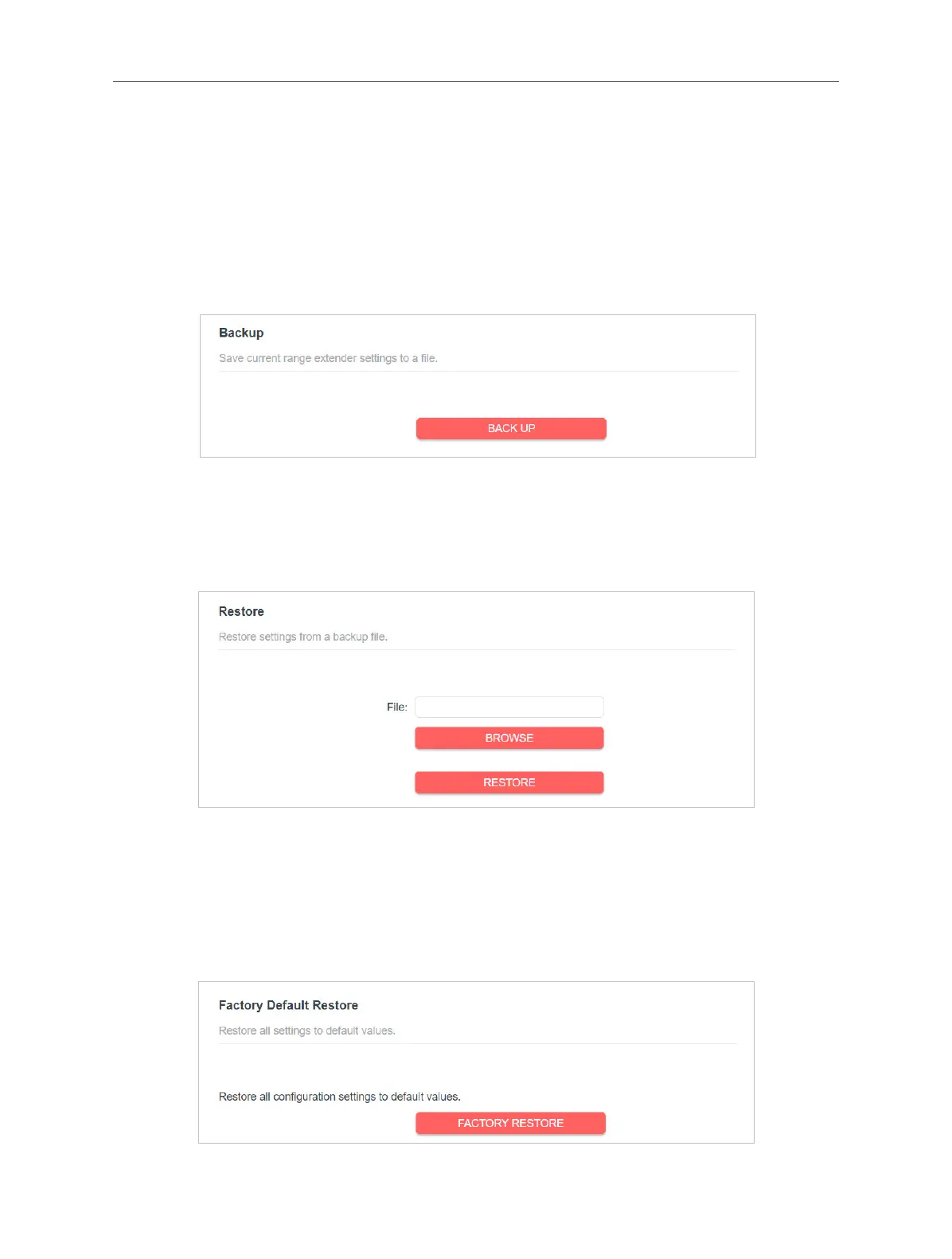 Click BACK UP to save a copy of the current settings to your local computer. A ‘.bin’