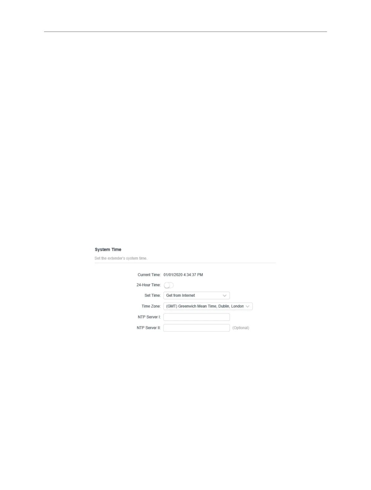 System time is the time displayed while the extender is running. The system time