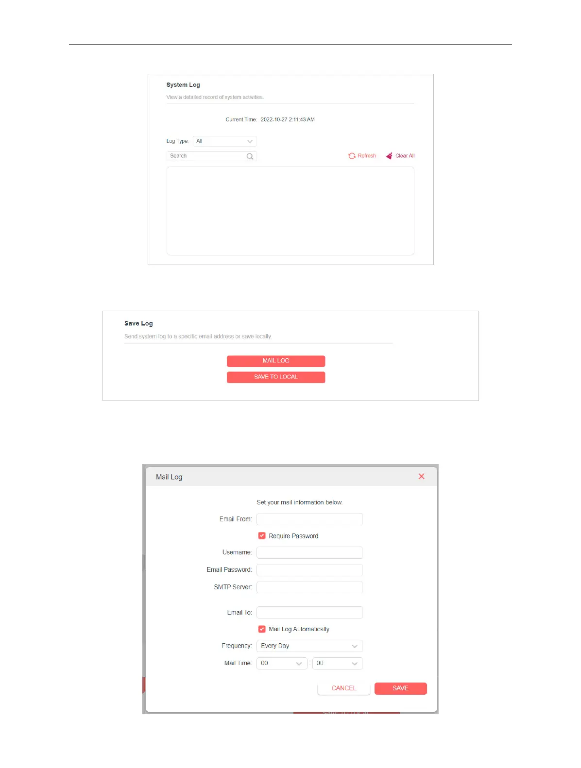 4. If you want to send the system log to your mailbox, click MAIL LOG and congure