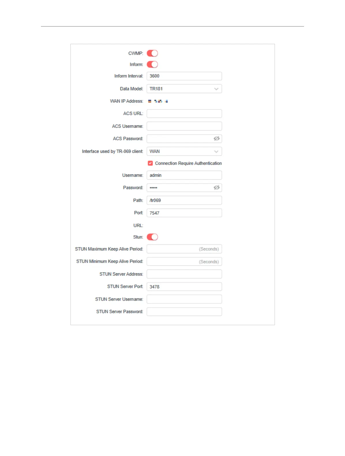 • CWMP - Toggle on to enable the CWMP function.