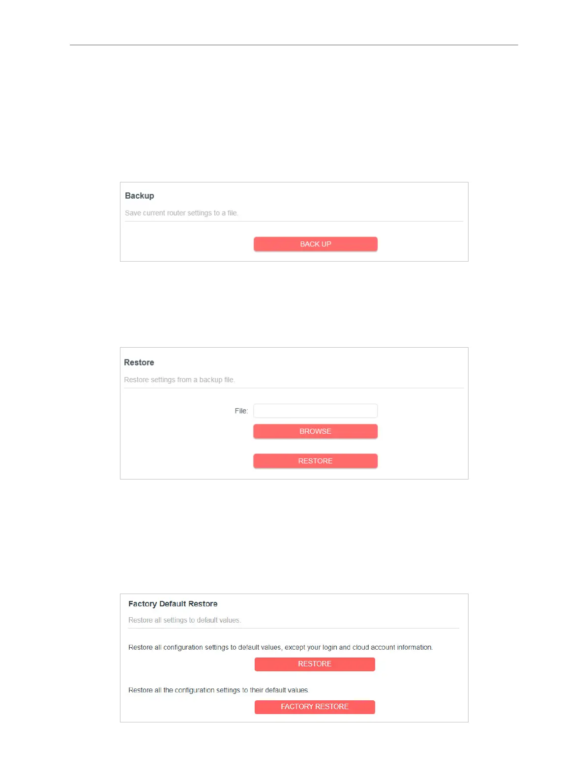 Click BACK UP to save a copy of the current settings in your local computer. A “.bin“