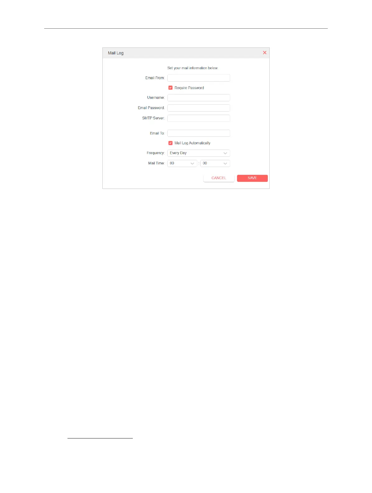 • Mail Log Automatically: If selected, the router will automatically send the system