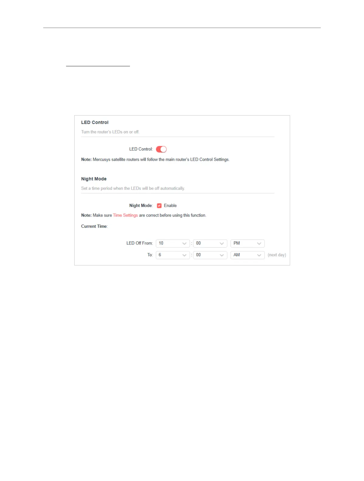 Note: The eective LED o time is based on the time of the router. You can go to Advanced > System > Time to modify the