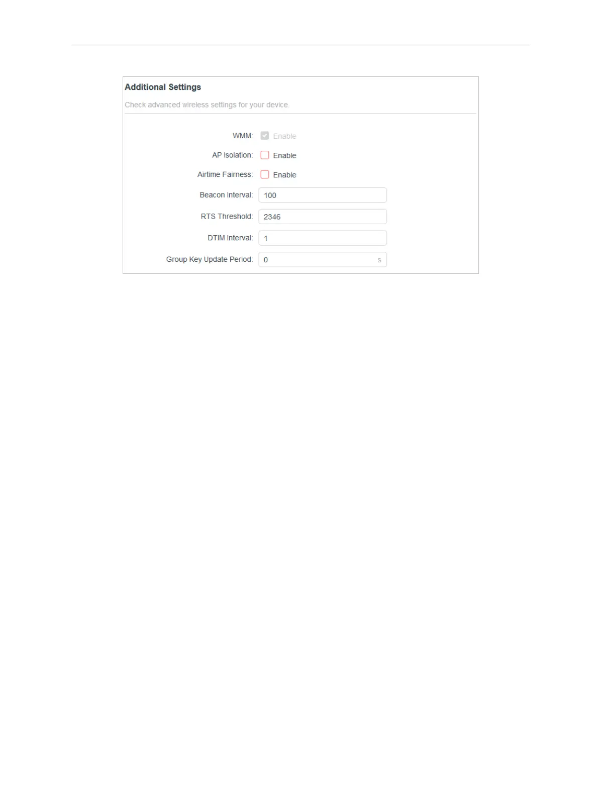 • Group Key Update Period - Enter a number of seconds (minimum 30) to control