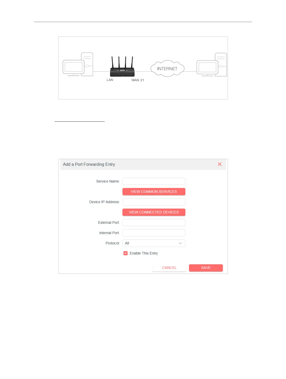 • It is recommended to keep the default settings of Internal Port and Protocol if you are not clear about which