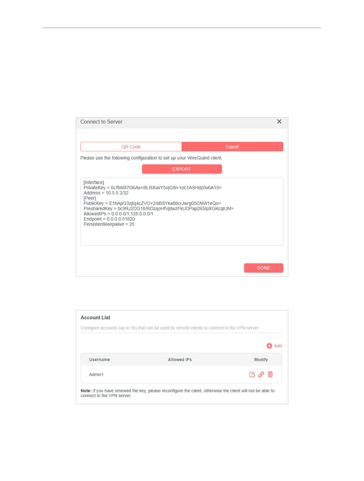 • For other devices (e.g. Mercusys WireGuard VPN client), click EXPORT to save the