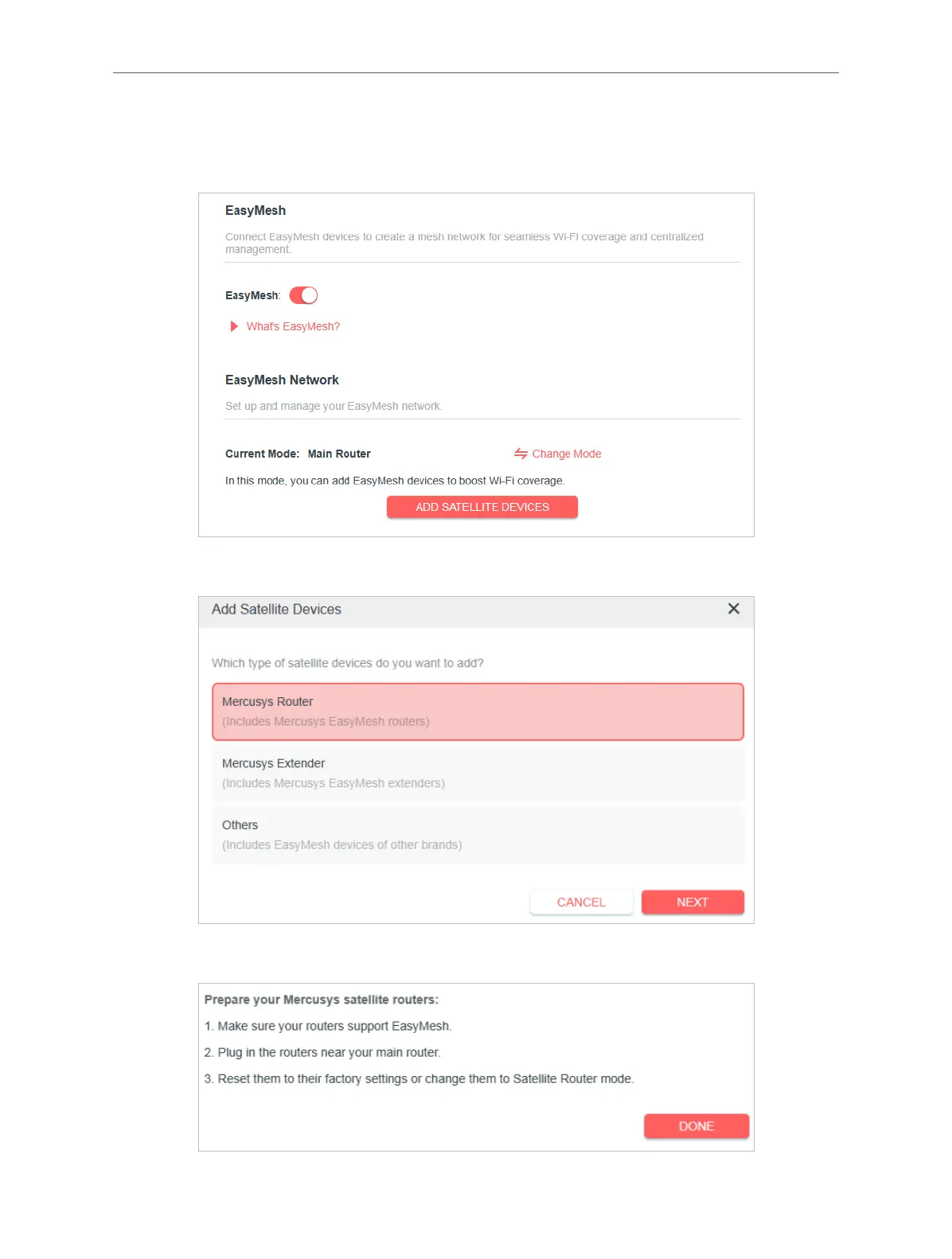 3. Click ADD SATELLITE DEVICES, select Mercusys Router, then click NEXT