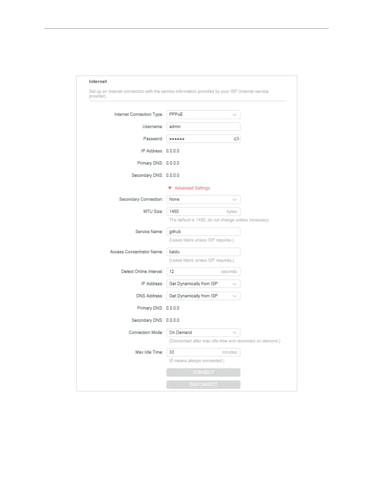 • Secondary Connection - It’s available only for PPPoE connection. If your ISP provides