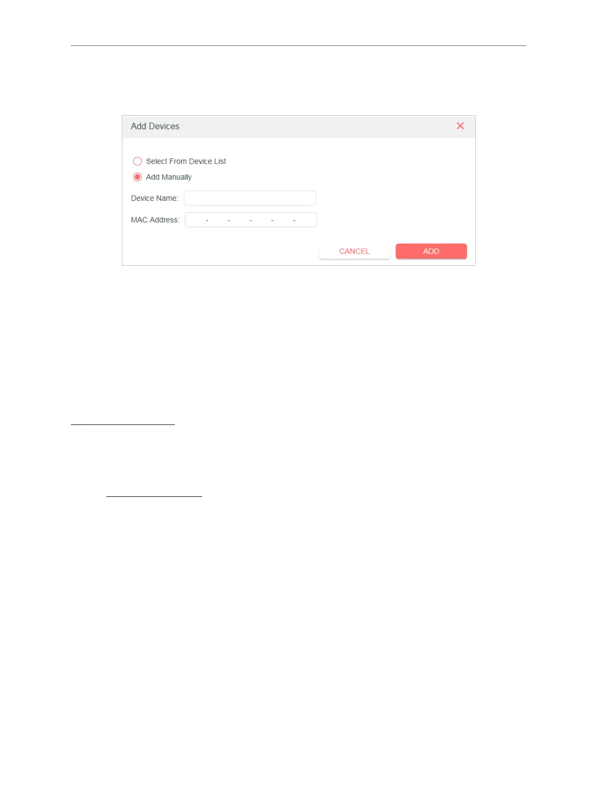 Click Add Manually and enter the Device Name and MAC Address of the device you