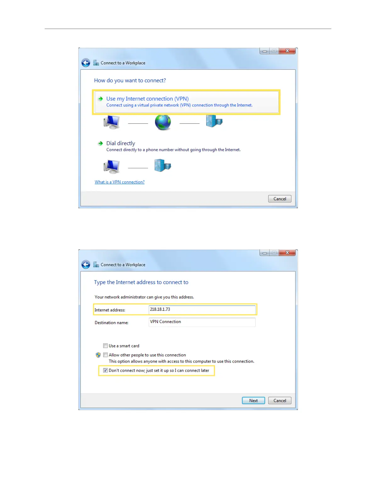 address field, and select the checkbox Don’t connect now; just set it up so I can connect