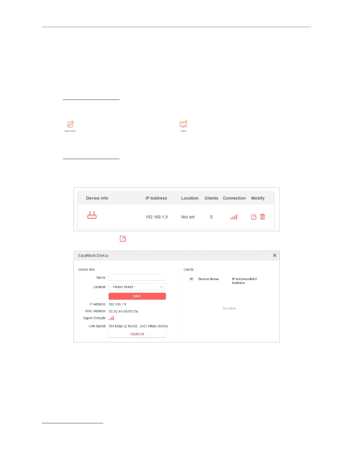 to view all mesh devices, and click to view all connected clients.