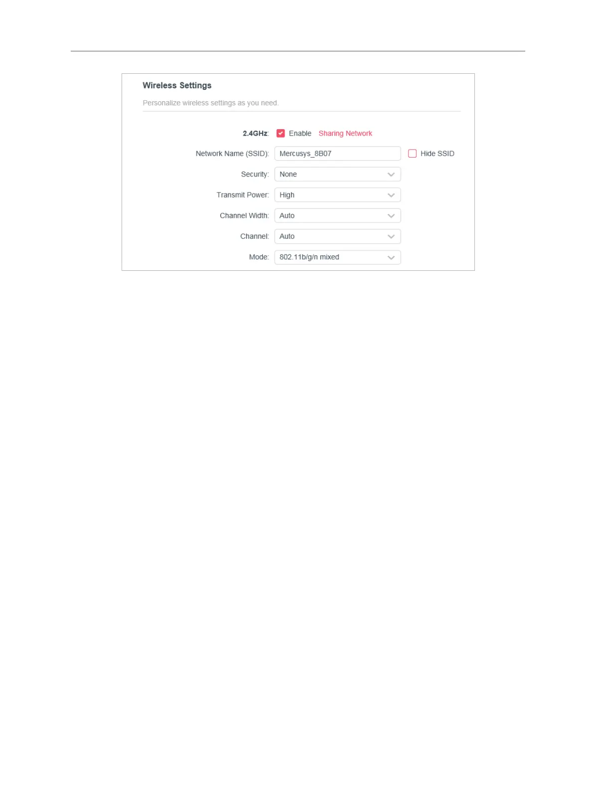 • Hide SSID - Select this checkbox if you want to hide the 2.4GHz network name