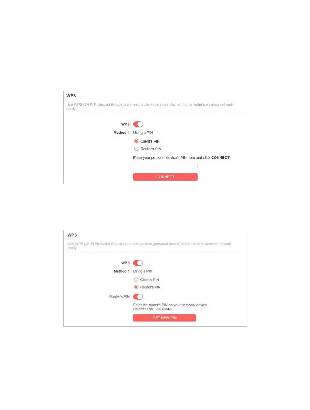 1. Keep the WPS Status as Enabled and select Client’s PIN.