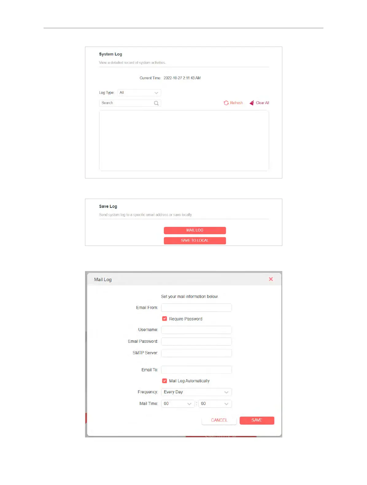 4. If you want to send the system log to your mailbox, click MAIL LOG and configure the mail