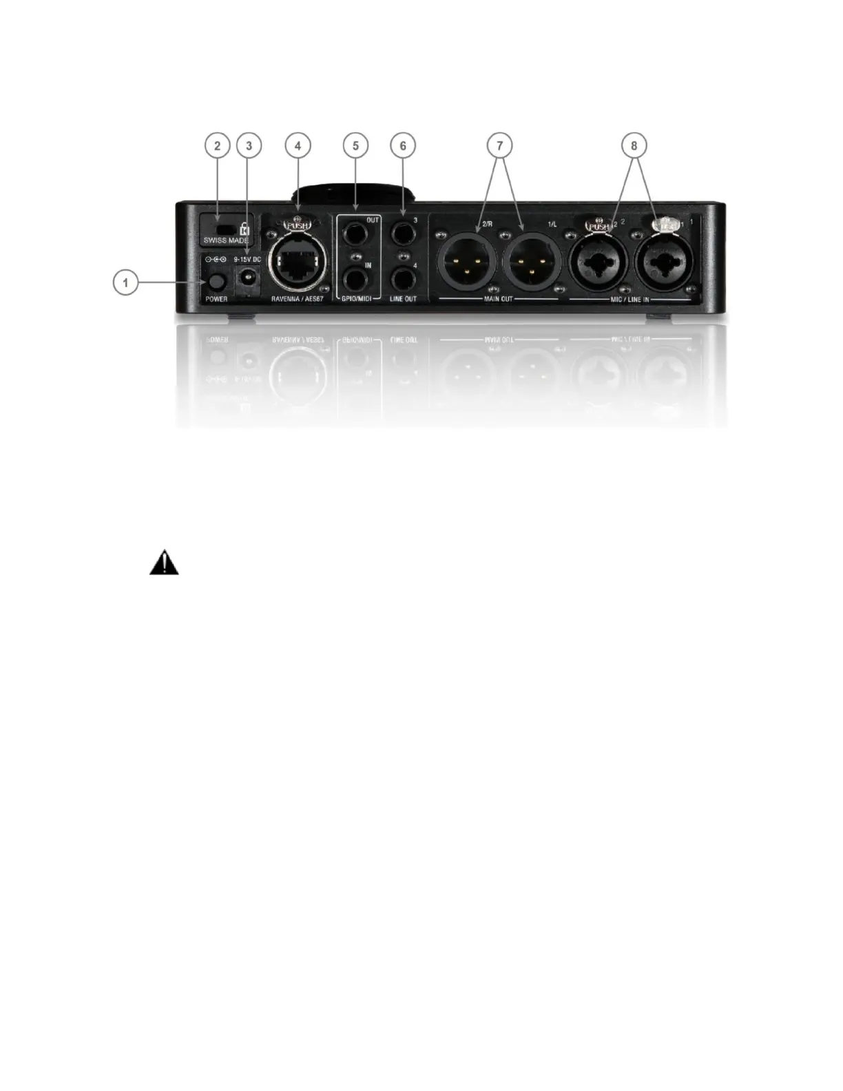 4. RAVENNA/AES67 interface: RJ45 female receptacle with a locking EtherCon connector. A
