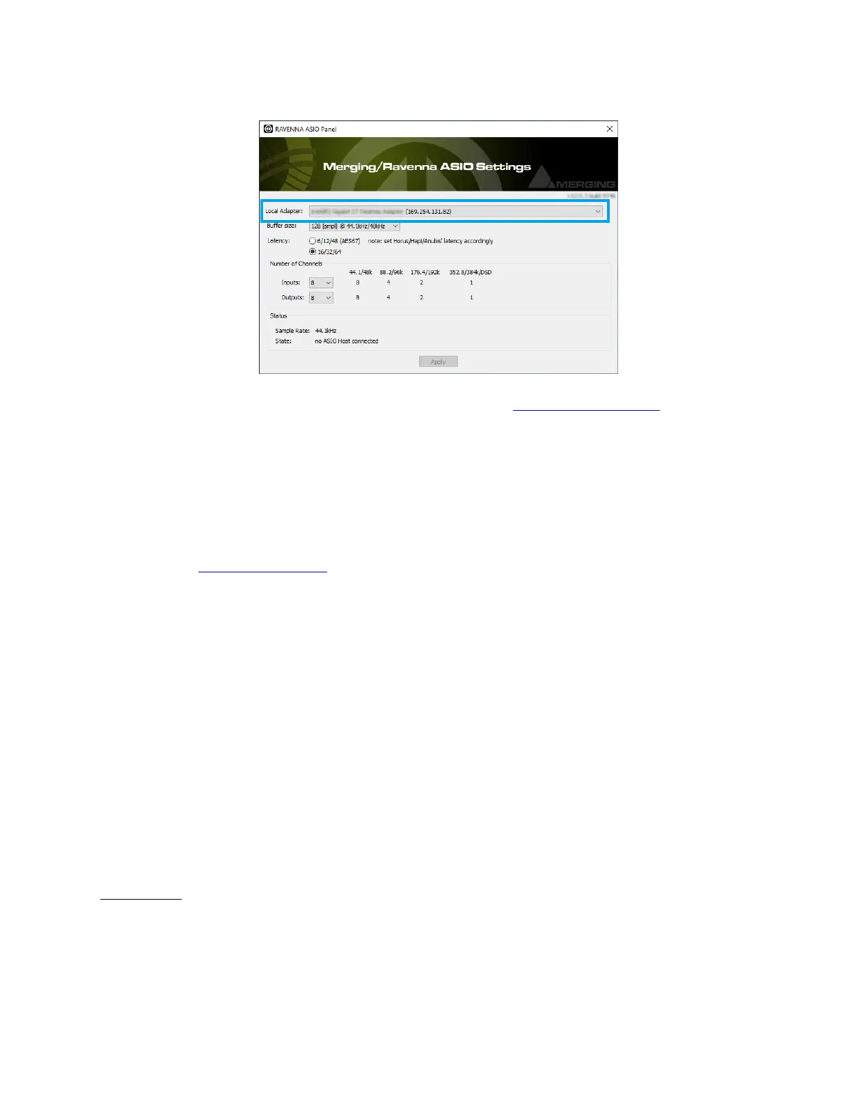 5. Make sure that your DAW is started and configured to use the Merging RAVENNA ASIO