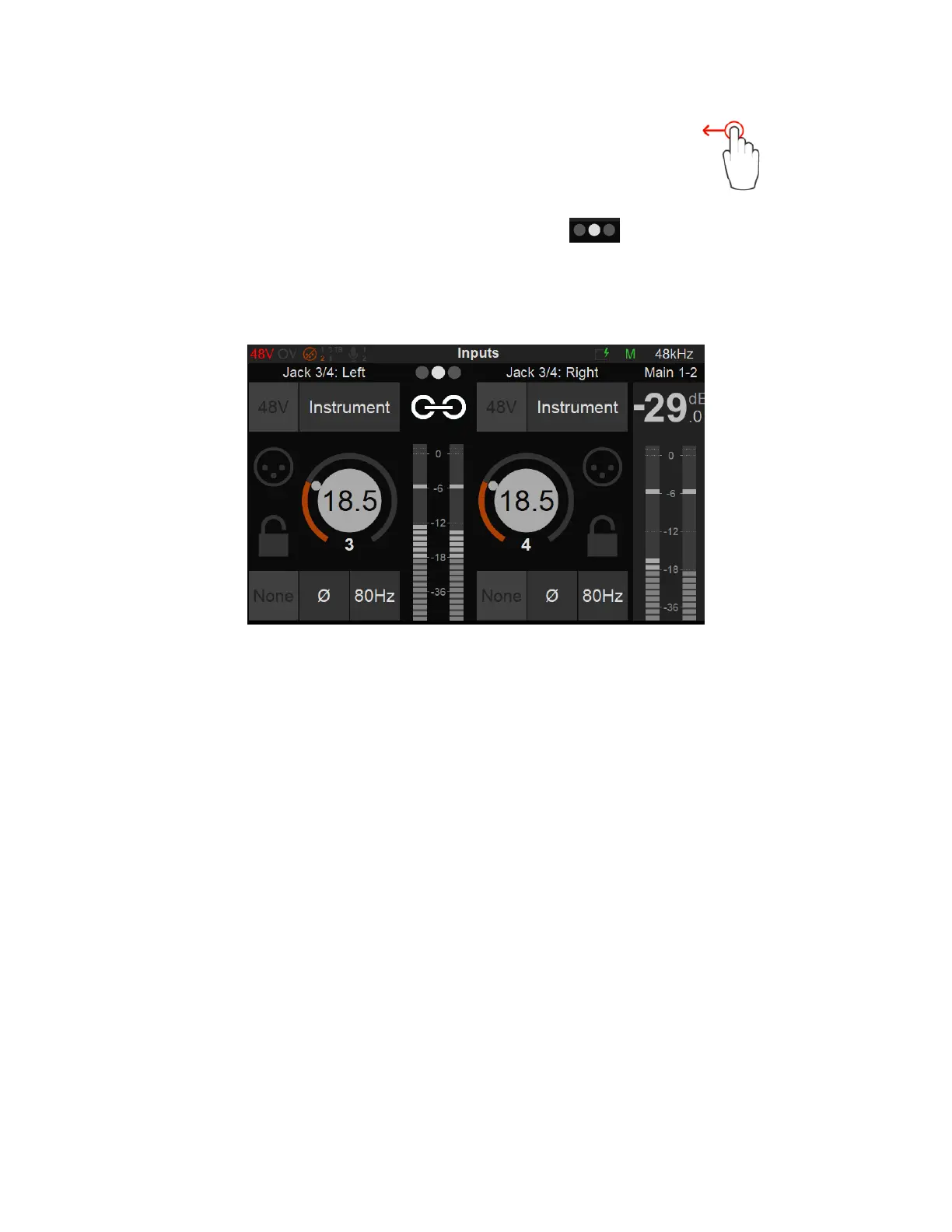 The Preamps controls for those inputs 3-4 are similar to inputs 1-2 but will apply to Hi-Z,