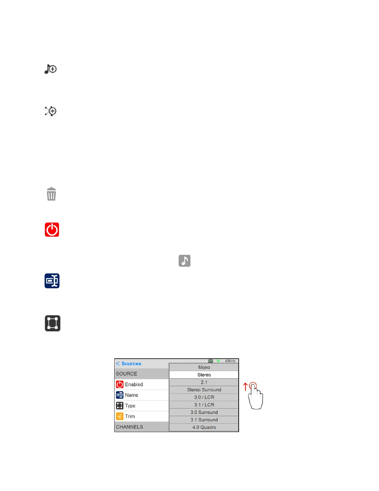 Select the source channel type. Predefined sources are available from mono to 22.2 Channel