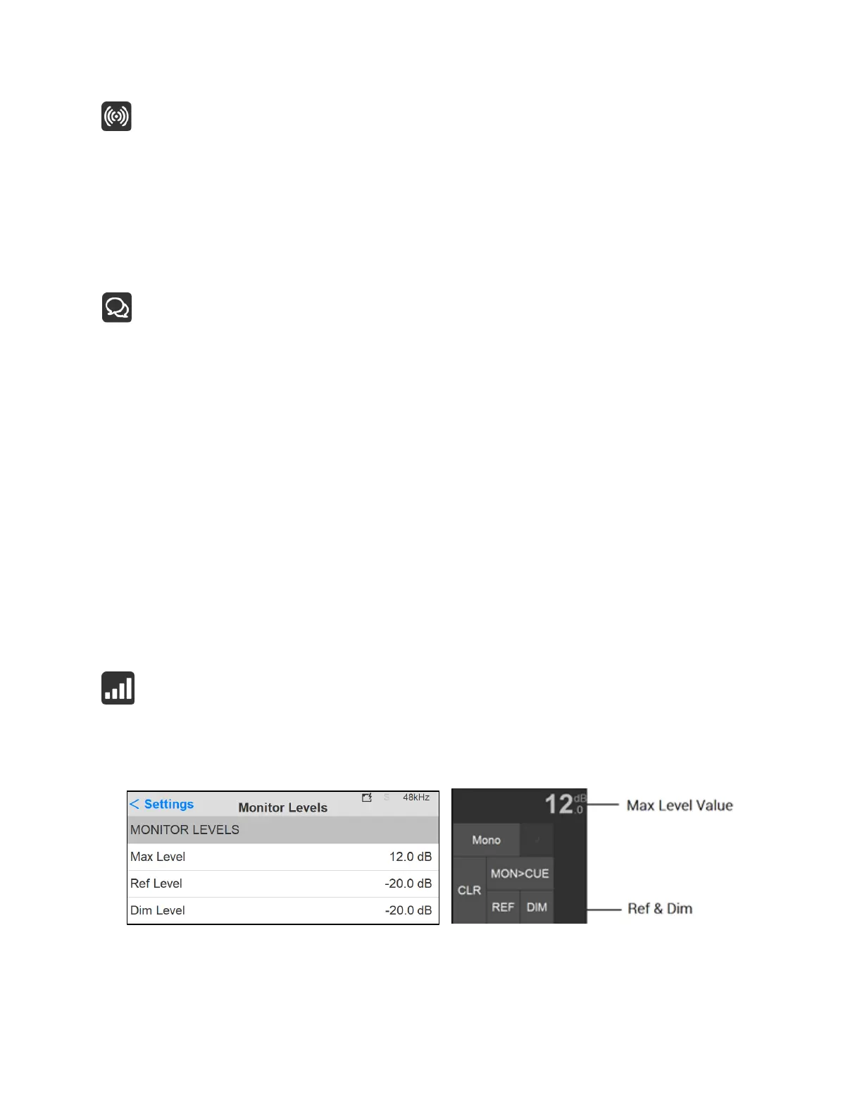 The Monitor Levels settings are in relation to the Monitor Control section of the Main pages and