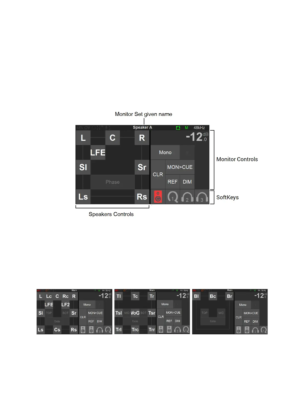 of a Monitoring Set is represented by a button given the name of the speaker channel type.