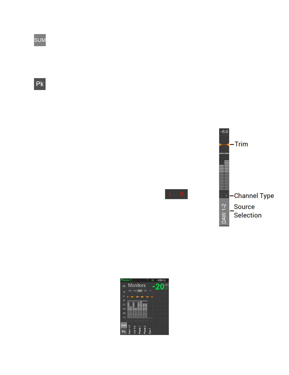Trim the level of a Source or Monitor by first selecting it, while holding the