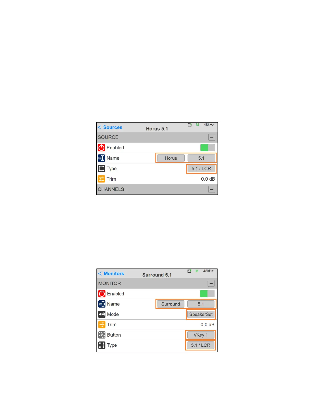 importantly choose your Monitor Set layout from the Type entry field listing (5.1 / LRC).