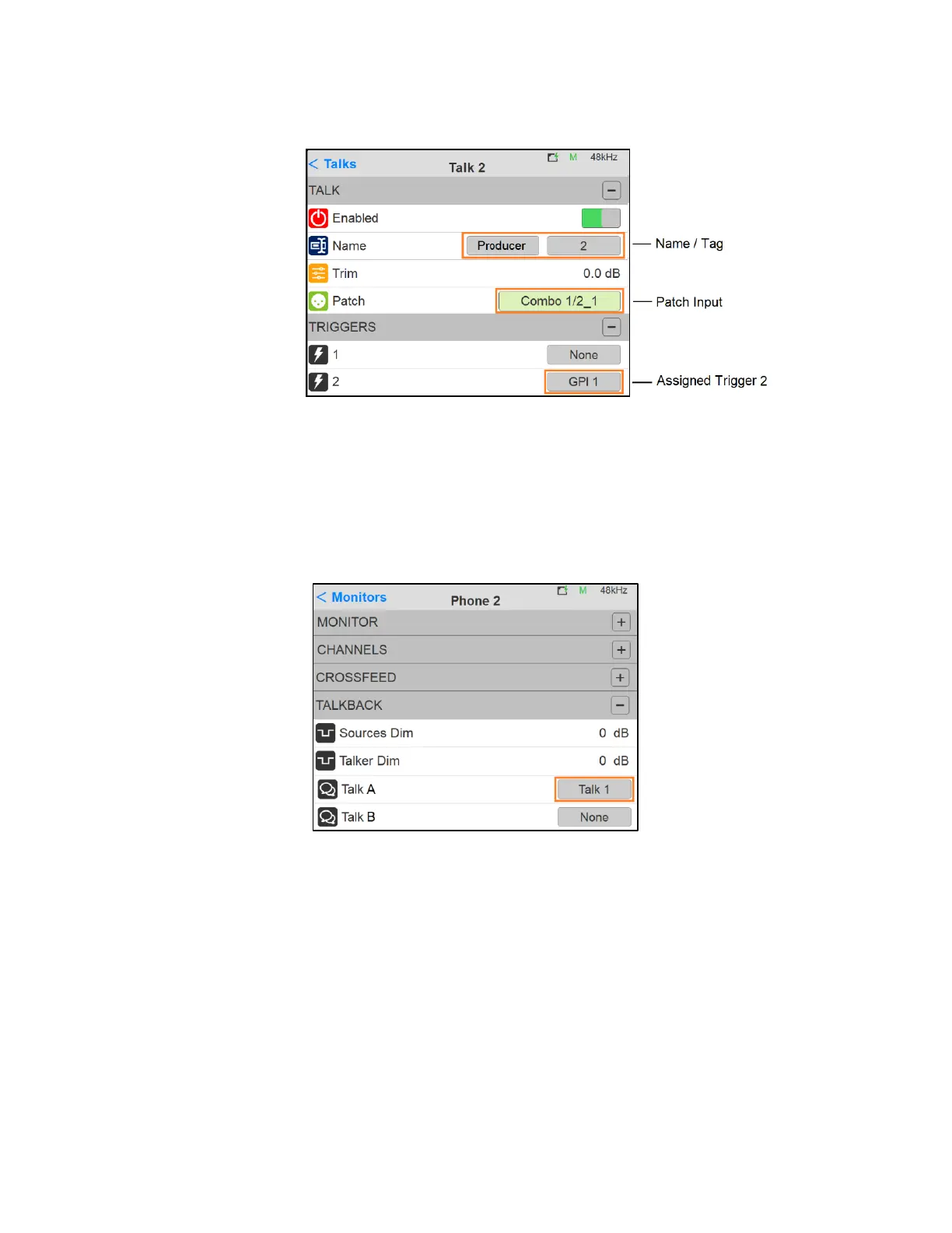 one of the Talkbacks will communicate to this Monitor. If a Talk is set to None it will prevent a