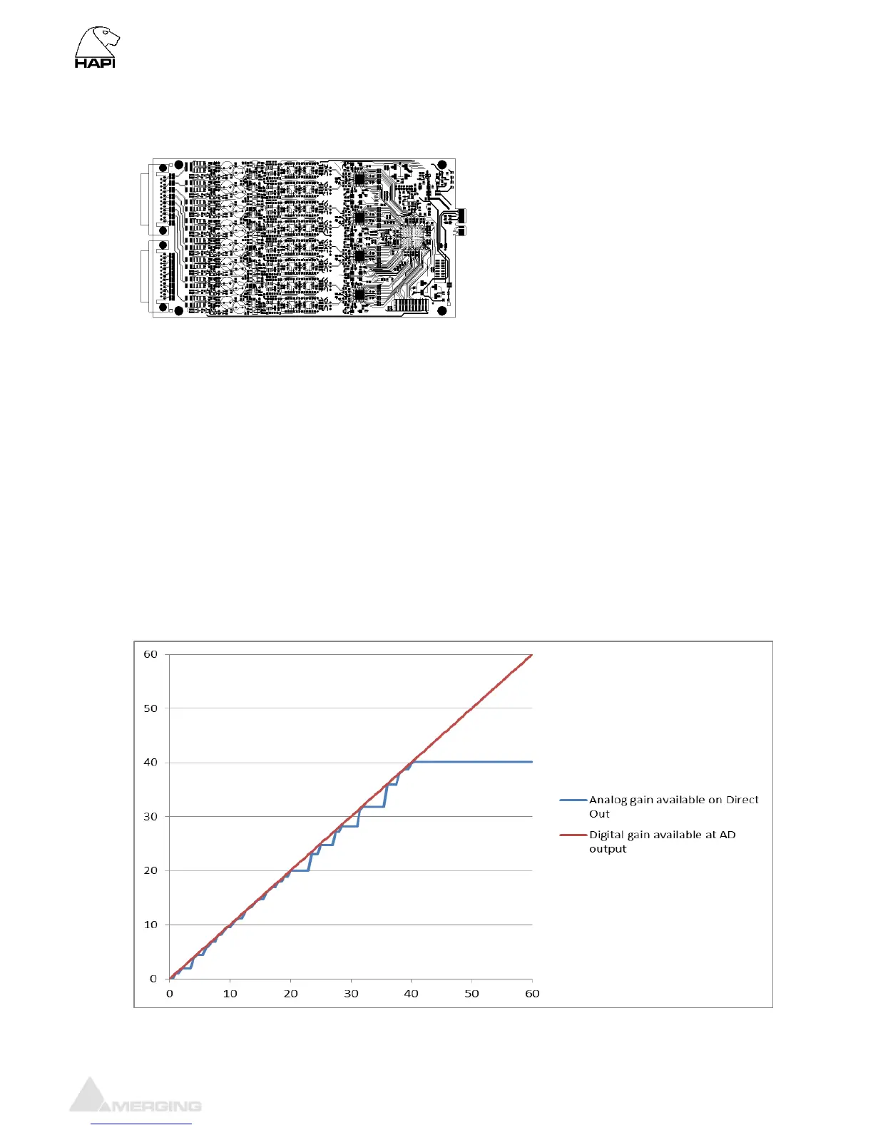 smooth and linear as after the digital conversion. The figure below shows the behaviour of the gain on