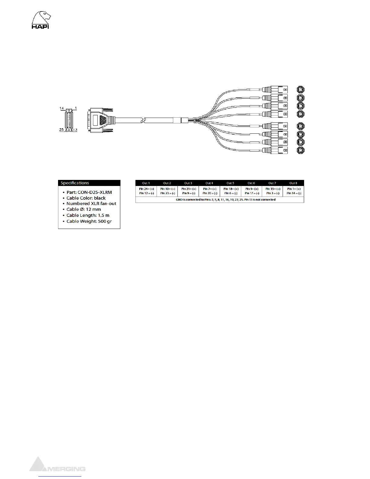 Note: The pinout of the DB-25 is as per AES59 (Tascam Analog).