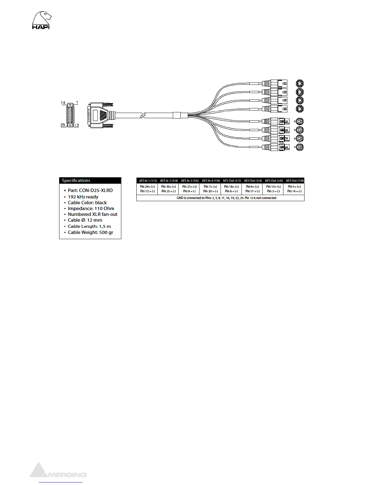 Note: The pinout of the DB-25 is as per AES59 (Tascam Digital).