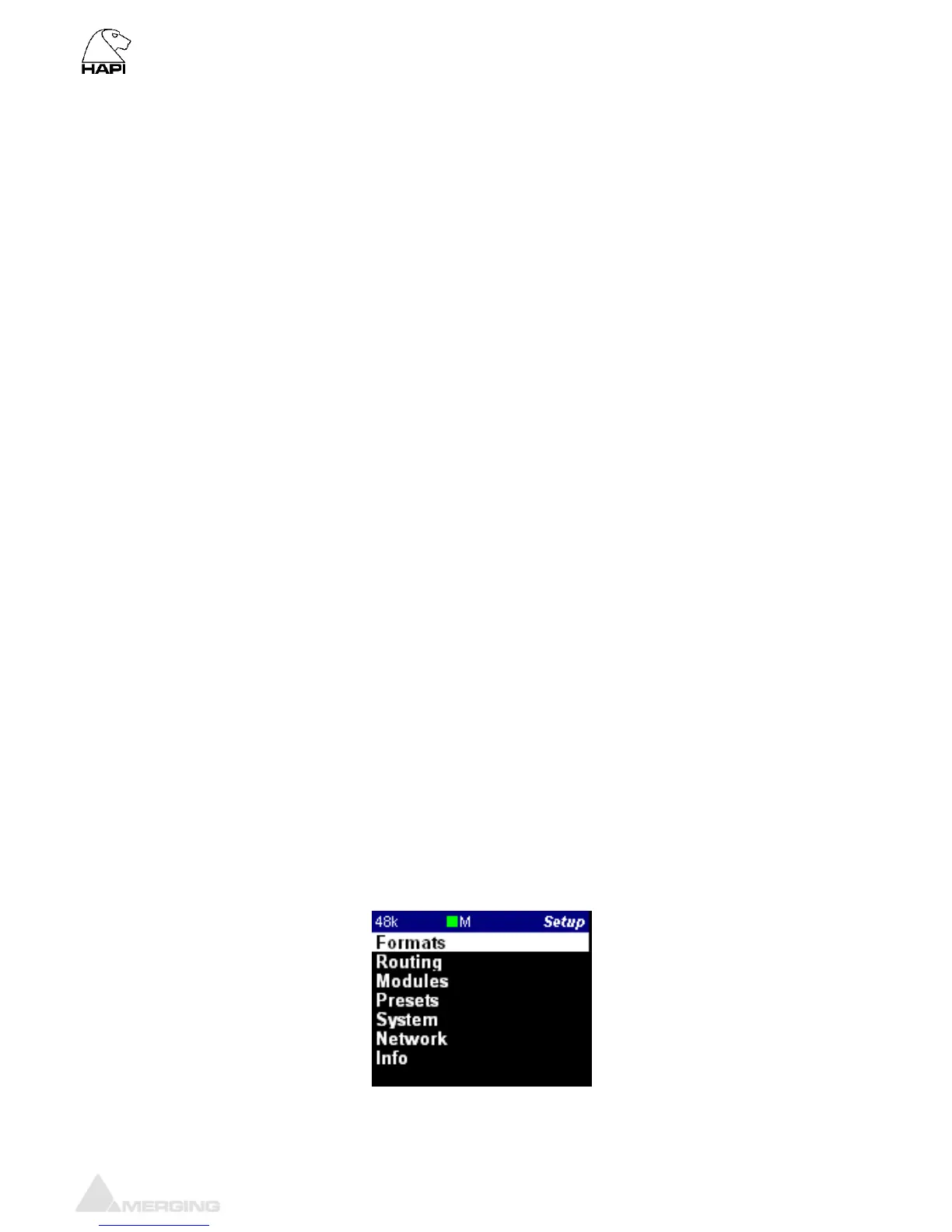 listed in the sub-sections; Formats, Routing, Modules, Presets, System, Network and Info