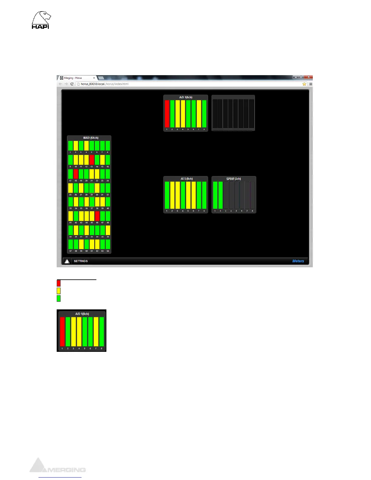 The Meters web menu will display the input metering of the modules present in the Hapi