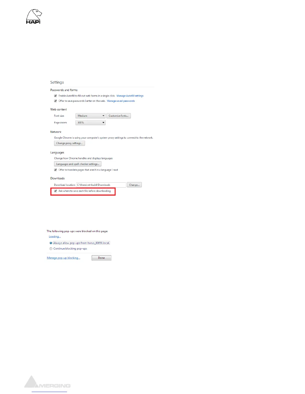 you allow pop-ups from your Hapi.