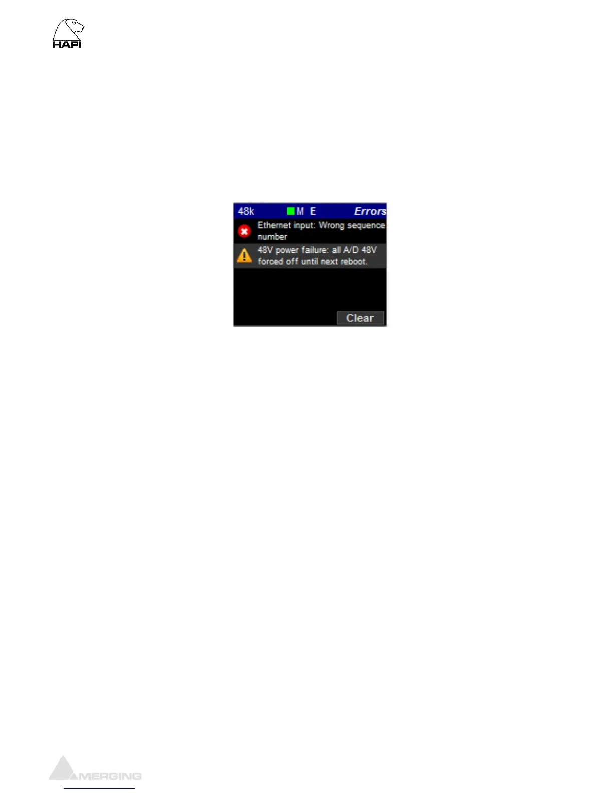 Error on the incoming RAVENNA streams. There might be click on the physical output of the Hapi.