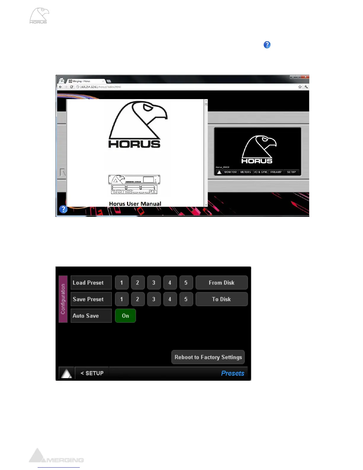 bottom left of your browser. This will overlay the Horus User Manual on your Web control access page.