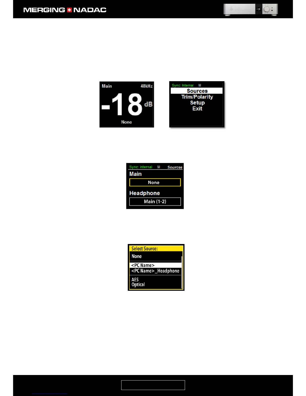 here is with the Zone menu in the MERGING+NADAC Settings panel set to Main + Headphone.