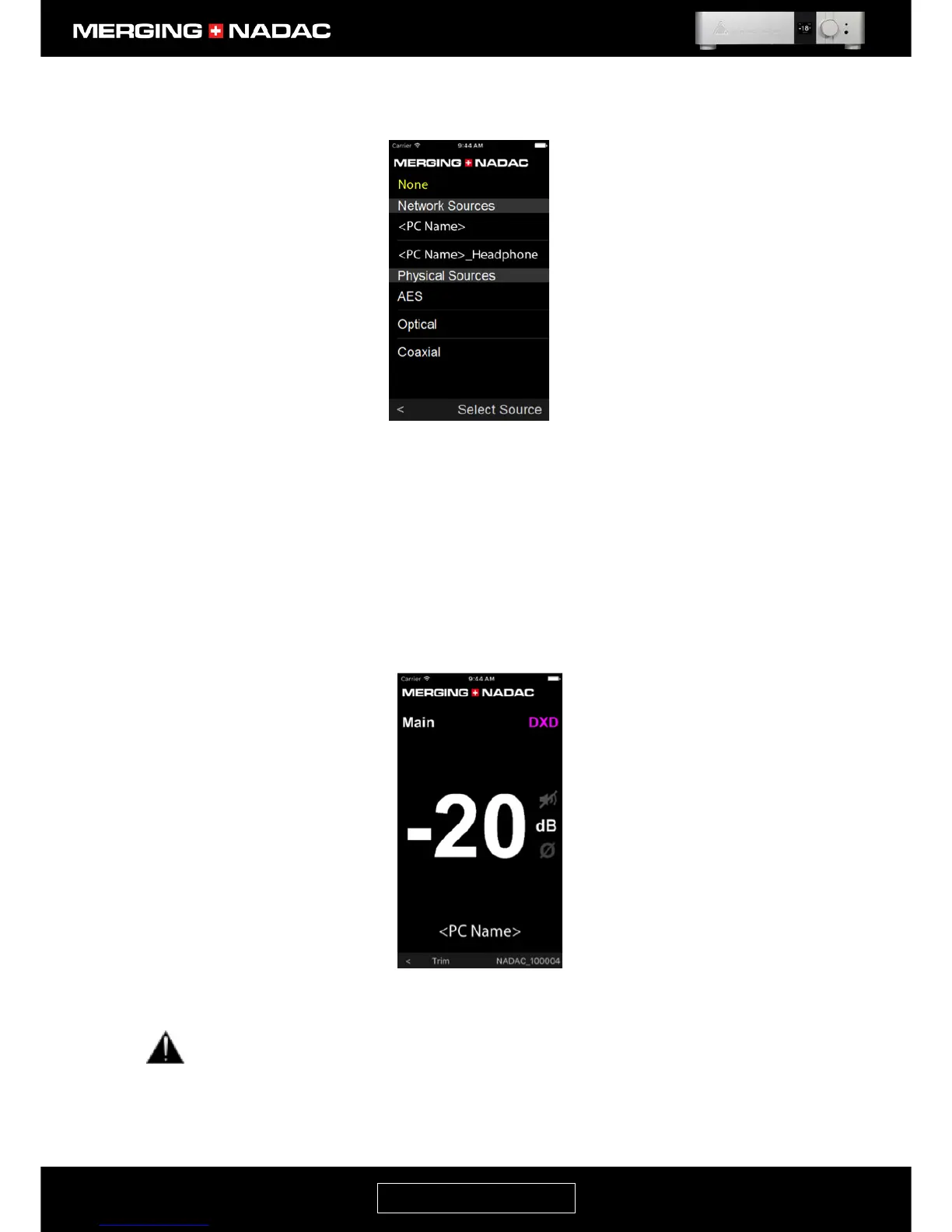 case <PC name>. The new source will be selected and the display will change to the NADAC App Home