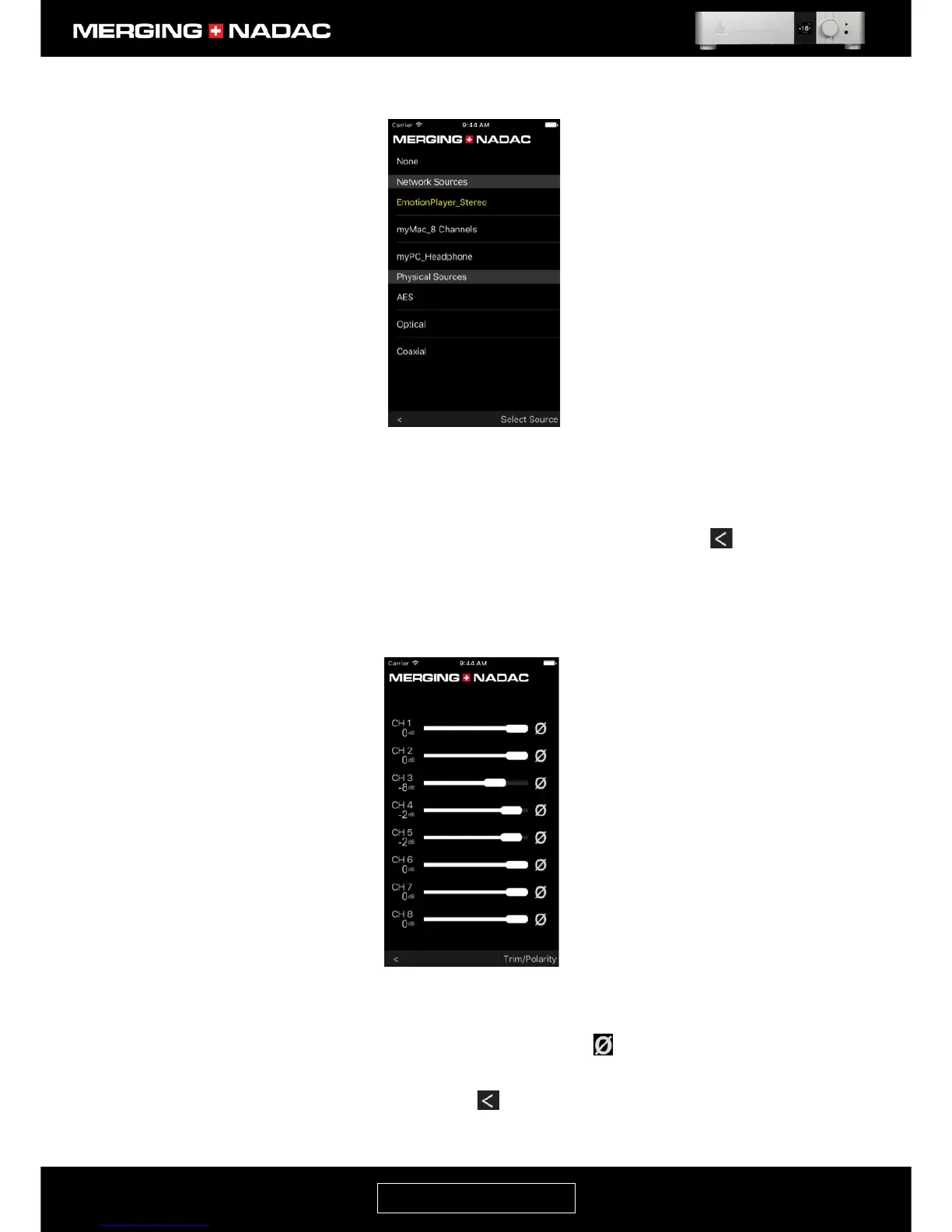 7. The Trim/Polarity page allows trim and polarity for each individual channel to be changed. Figure 82
